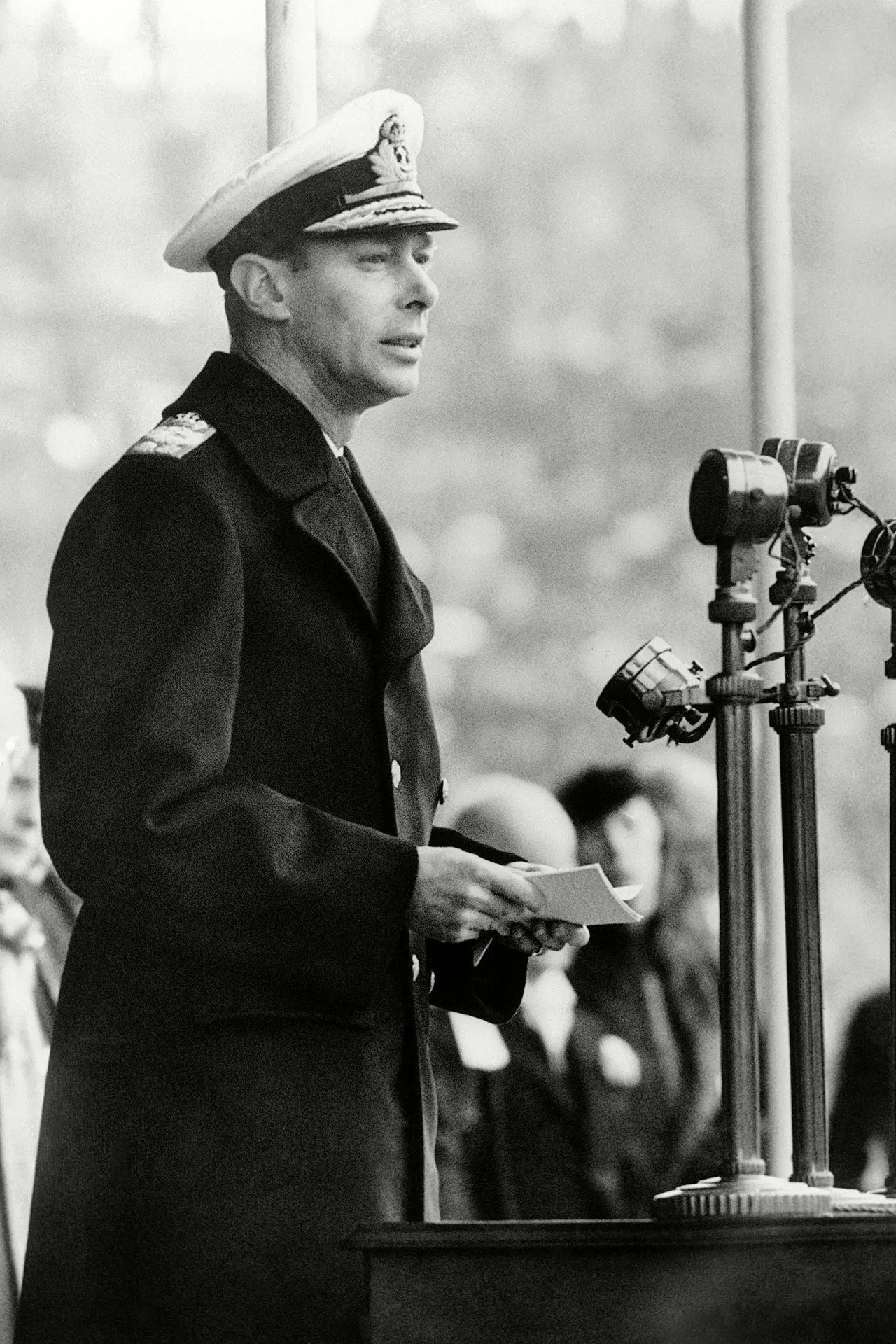 1939년 9월 3일, 조지 6세는 영국의 제2차 세계대전 참전을 알리는 역사적인 라디오 연설을 합니다. 그 연설은 기술적으로 완벽하지 않았지만, 떨리는 목소리 속에 진심이 담겨 있었고, 국민들은 그 진정성에 감동했습니다. 그의 목소리는 불안에 빠진 대중에게 안정과 용기를 주었고, 리더로서 신뢰를 얻게 되는 계기가 됩니다.
